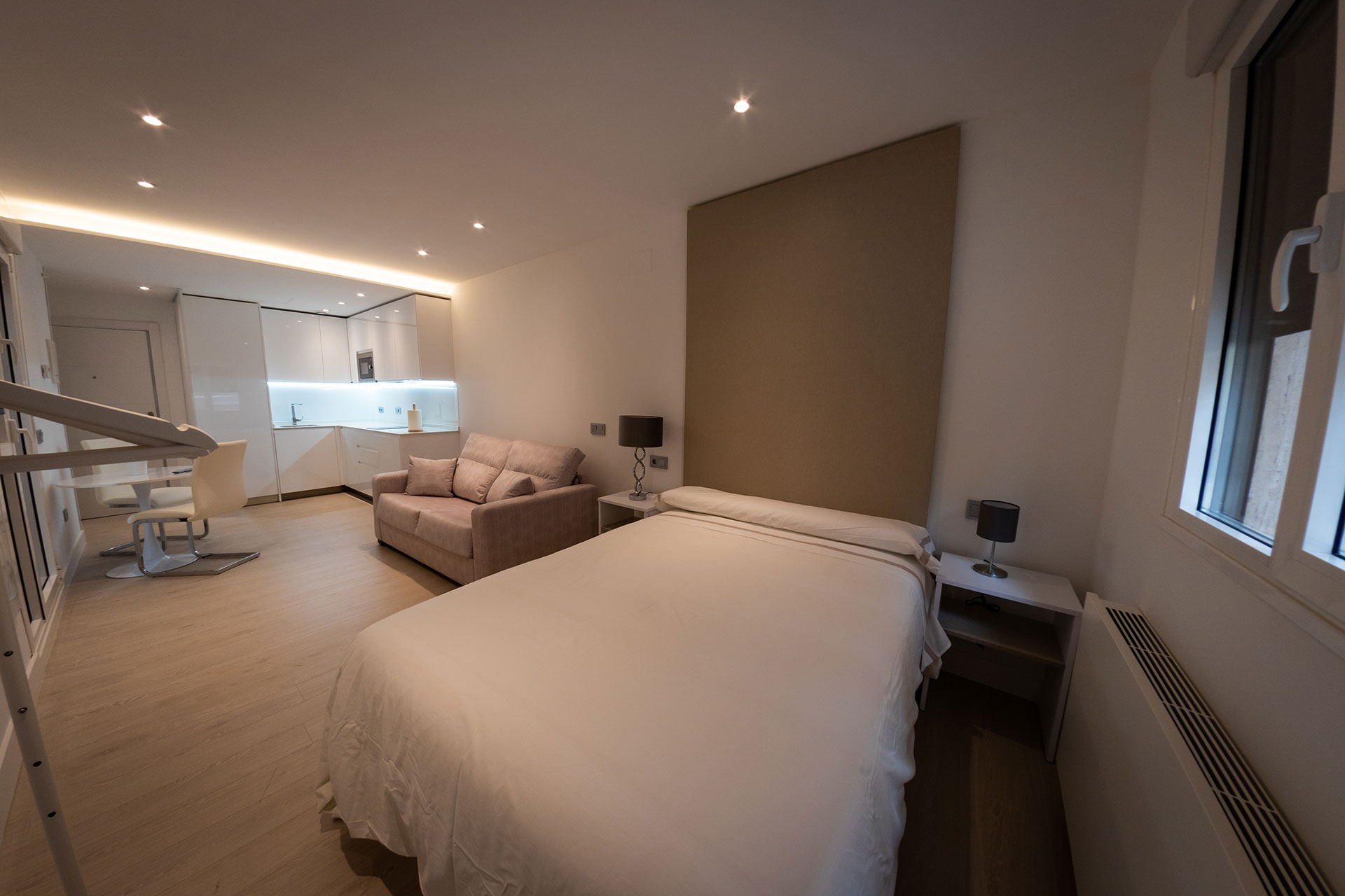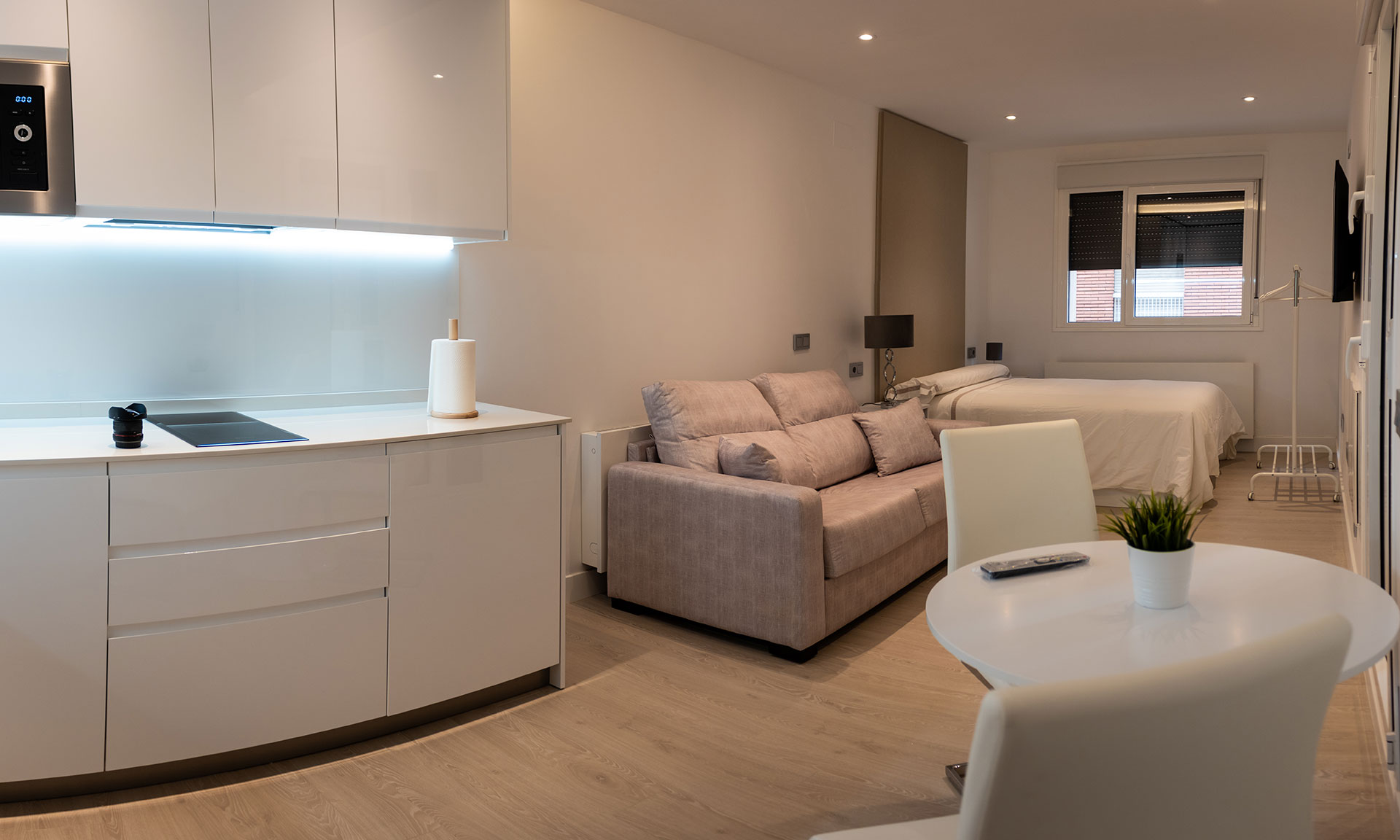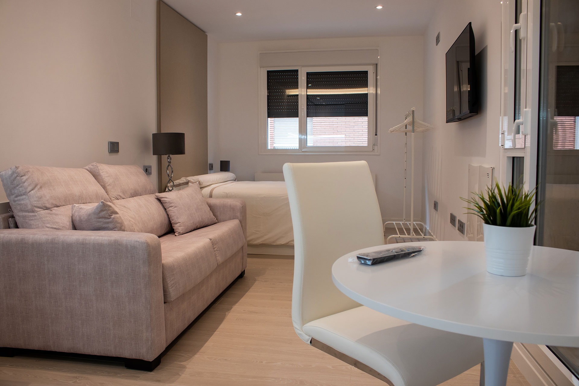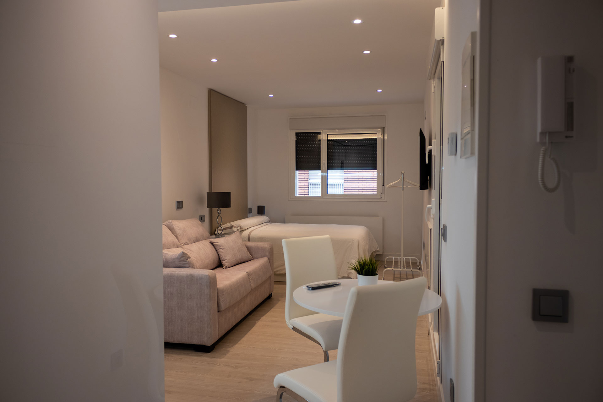 Disfruta de nuestro Estudio Estándar en Zamora centro, un espacio acogedor de 32 m² con 1 cama doble (135 cm), cocina completa y baño independiente. El apartamento cuenta con terraza con vistas a la ciudad, zona de estar con TV de pantalla plana, microondas, fogones, tostadora y cafetera, aire acondicionado y wifi gratuito.